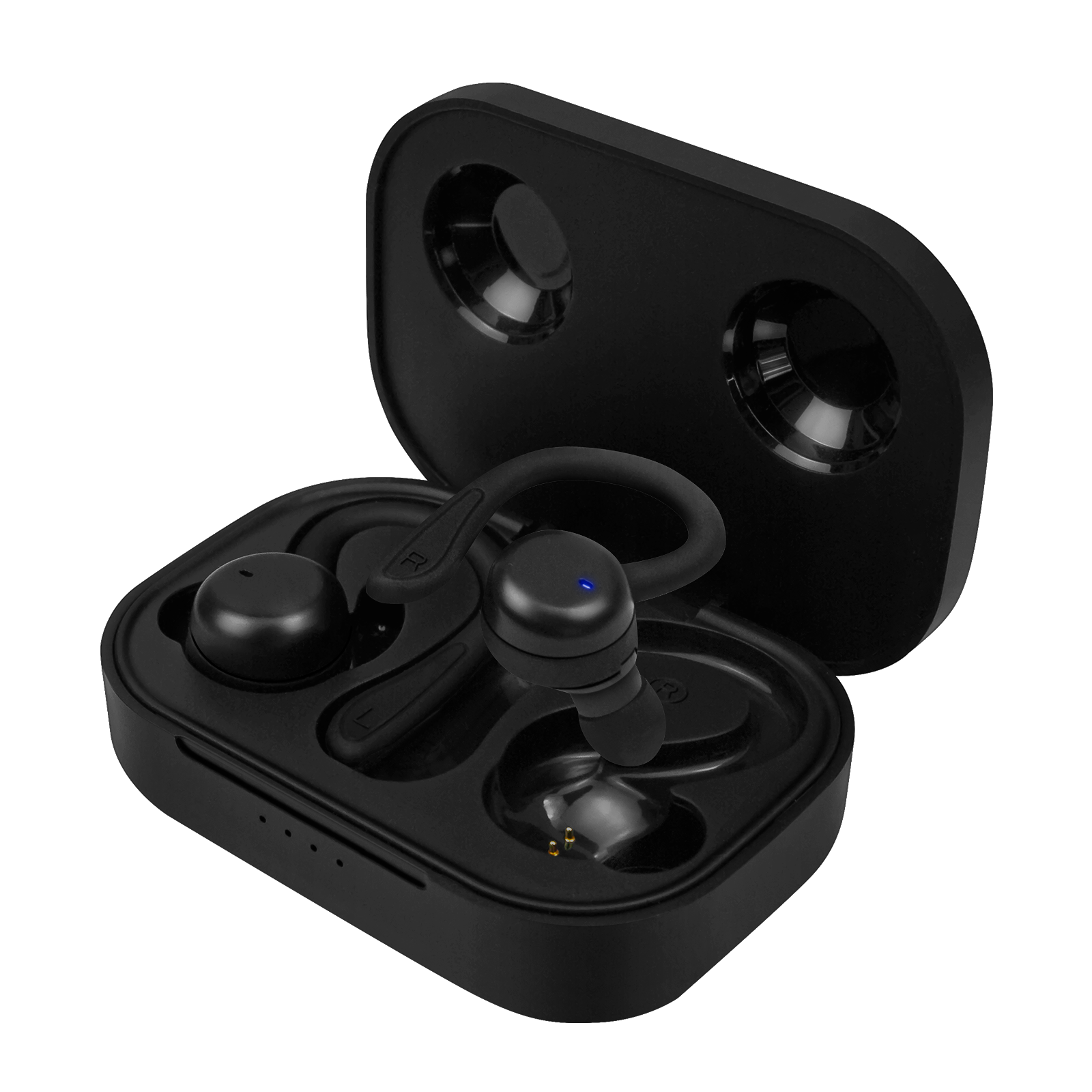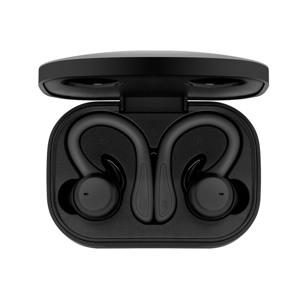 Su estuche de carga con fijación magnética tiene una capacidad de carga de 200 mAh y viene moldeado para poder alojar los auriculares con cualquiera de sus accesorios.