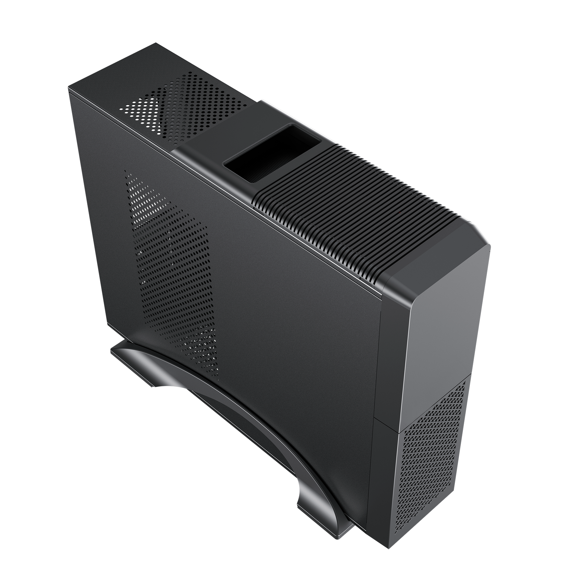 Permite colocación en vertical gracias a su soporte incluido. Admite placas base Micro ATX / ITX.