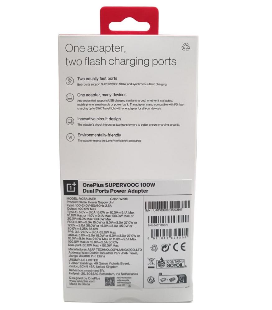 Características del OnePlus Cargador 100W Duo (USB-A y USB-C) Blanco