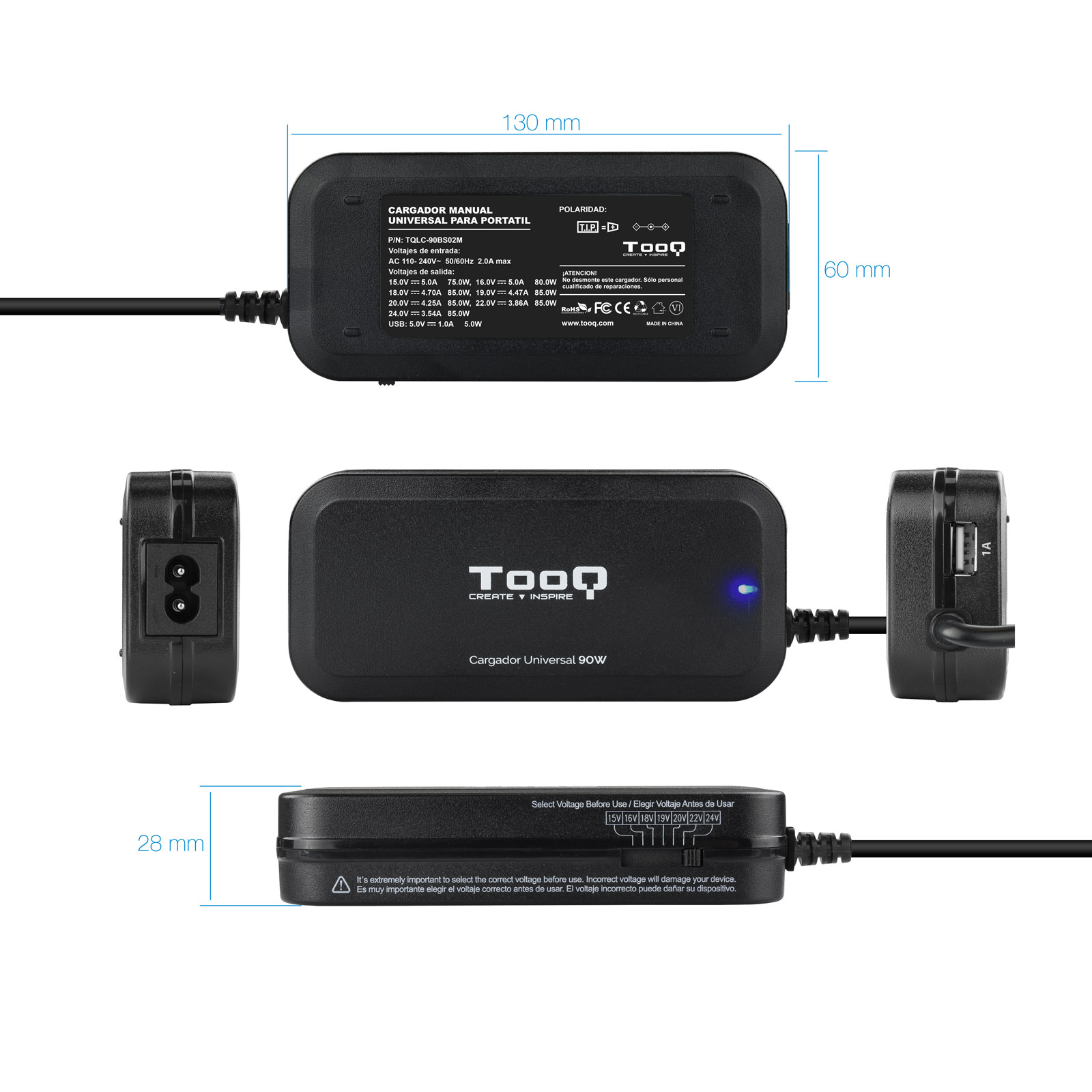 Cargador portatil universal tooq tqlc – 90bs02m 90w 1 x usb 12c negro