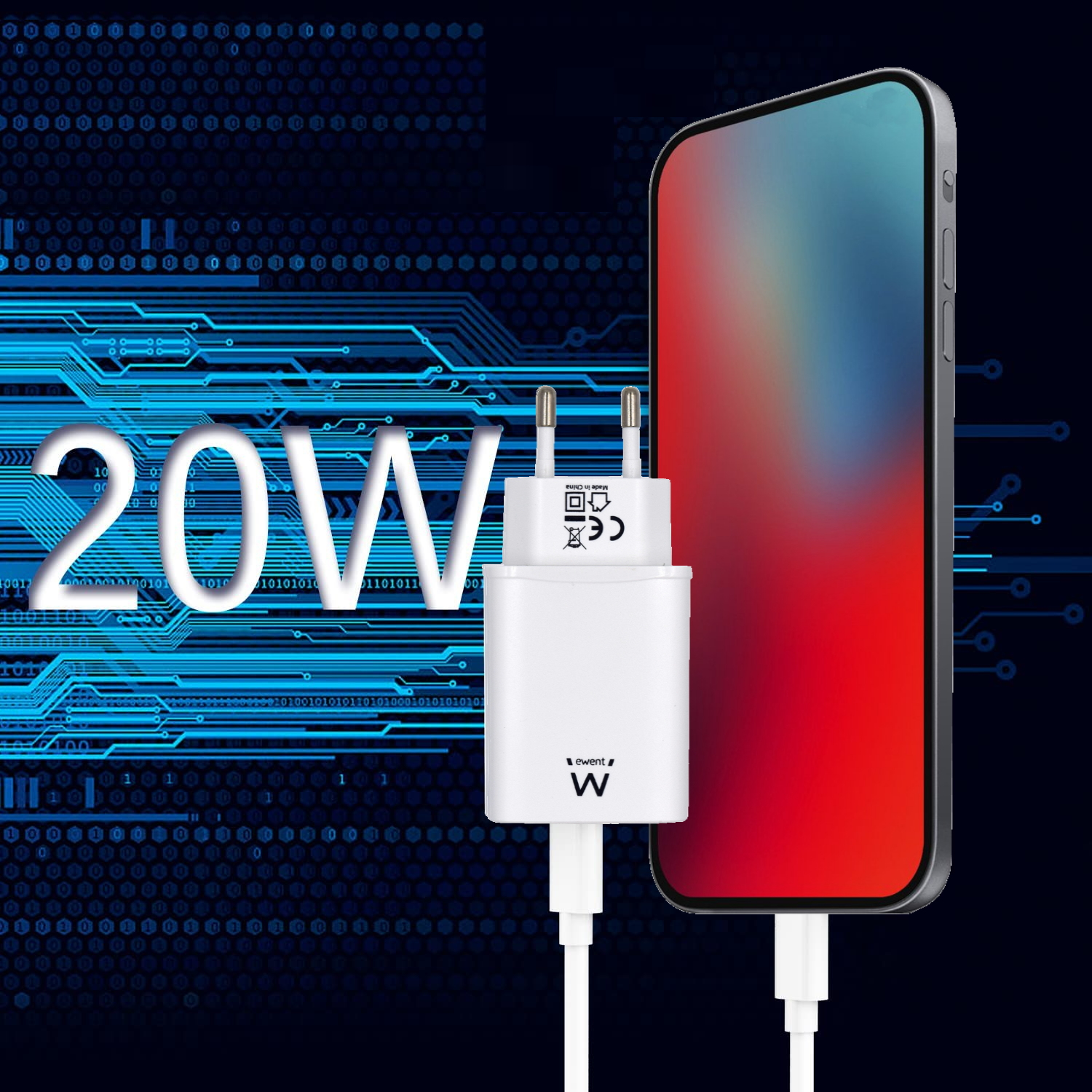 cargar los últimos iPhone. Conecta tu iPhone al cargador Ewent 20W USB-C y QC3. 0
