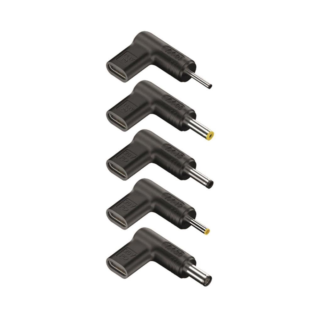 Pack de 5 clavijas USB-C diseñadas para cargar o alimentar ordenadores portátiles ASUS mediante adaptadores de diferentes tamaños. Ofrece una solución de carga versátil y adaptable para múltiples modelos de portátiles ASUS.