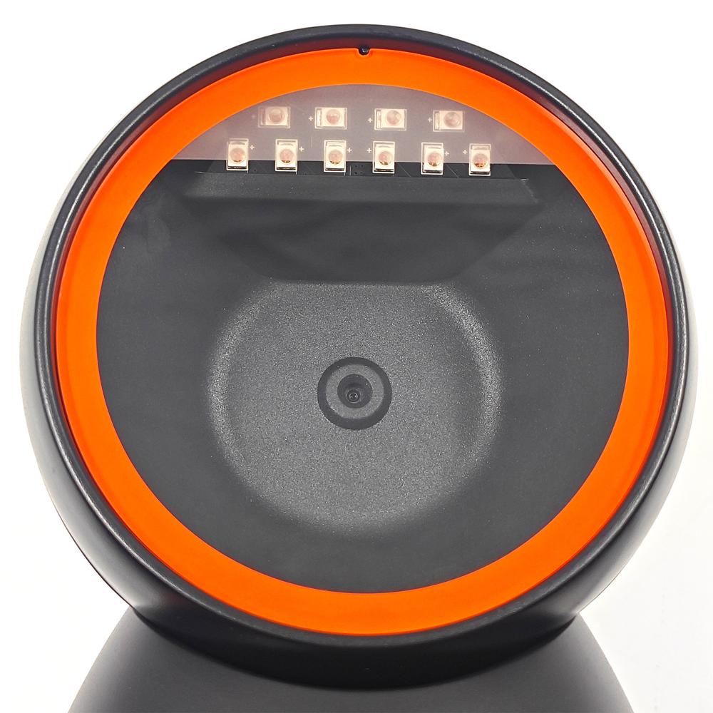 Lente omnidireccional que permite lectura en múltiples ángulos sin necesidad de ajustar la posición del código.