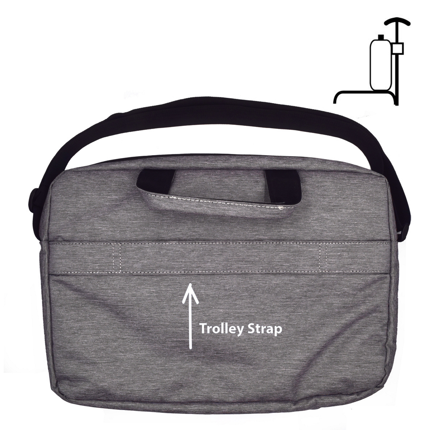 para guardar sus documentos, adaptador de corriente, ratón y otros periféricos. Lleve su computadora portátil con facilidad gracias a las cómodas asas y la correa ajustable para el hombro. La bolsa se acopla fácilmente a su maleta.