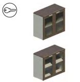La estructura de los armarios y los estantes se realizan con panel de partículas aglomeradas revestido por ambos lados con papel decorativo impregnado en resinas melamínicas. Espesor de 19mm para costados, techo, suelo y trasera. Espesor de 25mm para estantes. Disponen de niveladores en sus bases  regulables desde el interior.