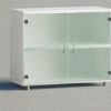 – Puertas de armario con cerradura. Los armarios bajos sin puertas, con puertas y con puertas de cristal matizado consta de 1 estante de 2mm de grosor.