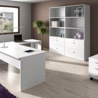 Precio variable según opciones disponibles. Compuesto de mesa y ala más 2 armarios: alto con puertas y alto con puertas bajas y estantes. Los armarios con envolventes de 40 mm. Tapa de mesa de 40mm y laterales de 60mm.Terminaciones Wengué y Americano. Frontis de 19 mm. Canto redondeado en 2 mm. 2 vigas bajo el sobre de mesa + embellecedor lateral acabado platino. *opción a badem de cristal sobre mesa (consultar precio)