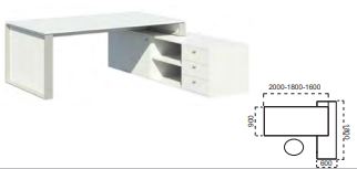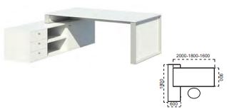Tablero de mesa de 19mm. Laterales bilaminado de 39mm. Perfil de 100×28 mm, DM lacado lateral.Medidas: 200×90 cm, 180×90 cm, 160×90 cm. Altura 70 cm. Opciones disponibles: – Armario auxiliar derecha, medidas 180×60 cm. – Aleron, medidas 120×68,5 cm.