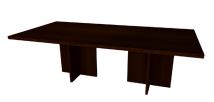 Tablero de mesa de 40mm, en sobres de mesa, con patas de mesa principal y ala de 60mm.Terminaciones Wengué y Blanco. Mesa rectangular, con base de aspa.
