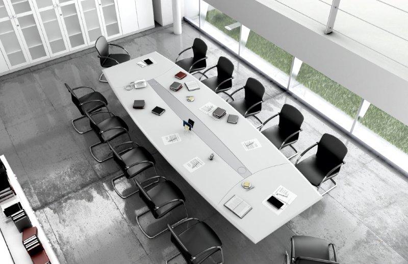 Las mesas de juntas modulares con pies en forma de cubo y con puerta practicable para archivar elementos de reunión. Estas mesas dispone de un marco inferior metálico de acero de 40mm por todo su perímetro inferior de color AL para ello se emplea pintura  en polvo epoxi-poliéster con espesores comprendidos entre 60 y 100 micras.
