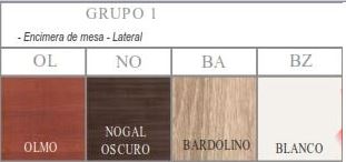 Las encimeras están fabricadas con material fibra de madera M.D.F 28mm grosor con papel decorativo impregnado en resinas melamínicas de color gris en su cara inferior (no vista) y con laminado sintético en la cara superior (superficie de trabajo). Cantos redondeados y postformados. Lleva instaladas de serie las tuercas necesarias para el anclaje de todos los pies de la serie, dichas tuercas son metálicas y están roscadas a la encimera M6 . Con electrificación vertical.