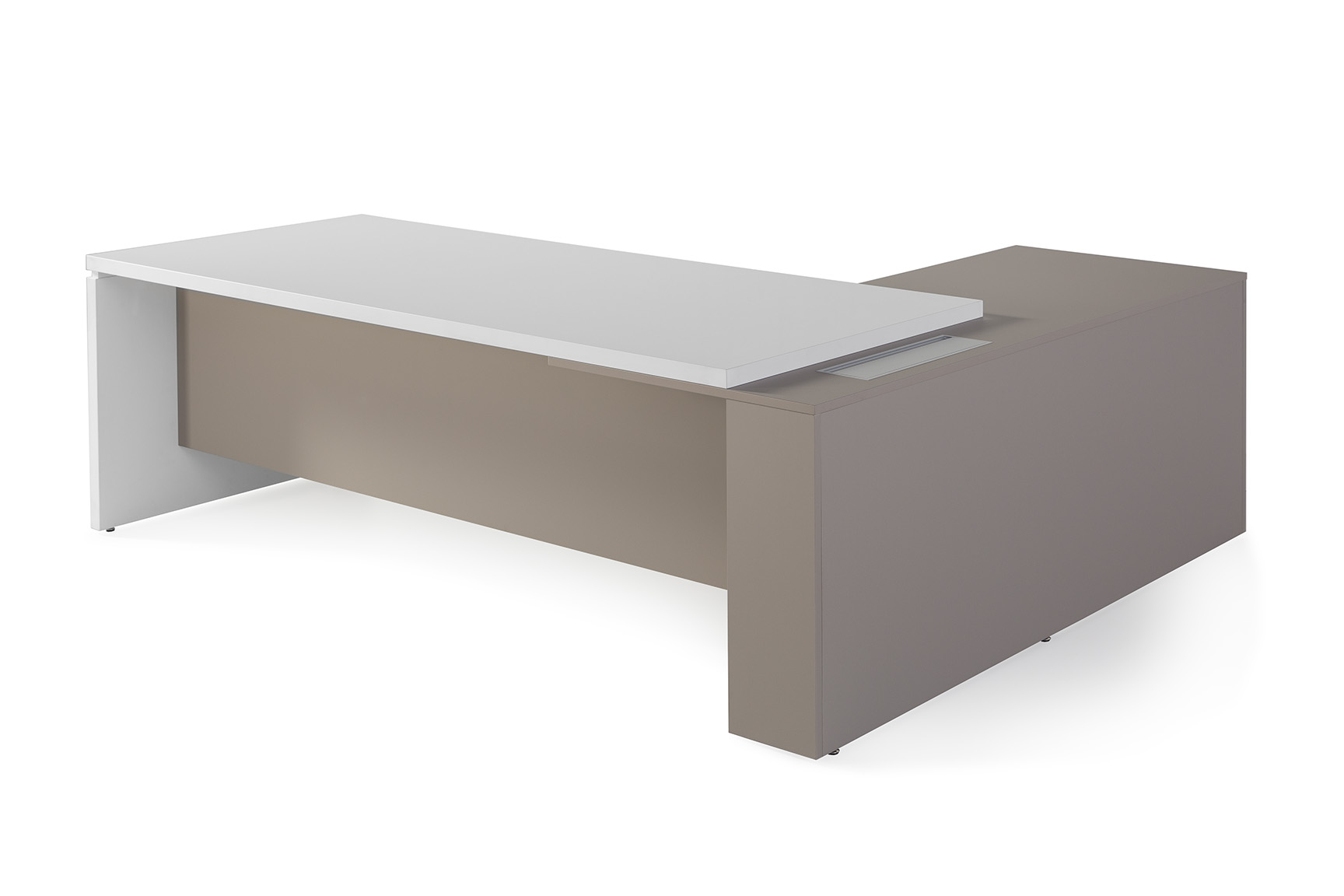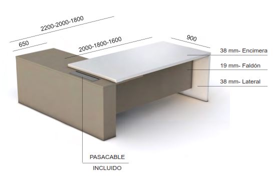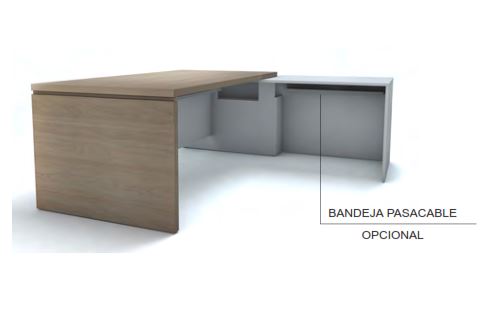 La G.3.3, es una mesa completa con ala, esto hace que el puesto de trabajo sea más amplio y cómodo, además, cuenta con el mismo pie hueco que el modelo anterior para ocultar el cableado, sus dimensiones totales son (220/200/180 cm x 90 cm), ala de 180 cm. Pie grueso.