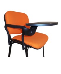 Silla para aulas de formación con pala, tapizadas con doble acolchado tanto en asiento como en respaldo, con espuma de alta densidad. Estructura de tubo oval negro, gris o cromado.